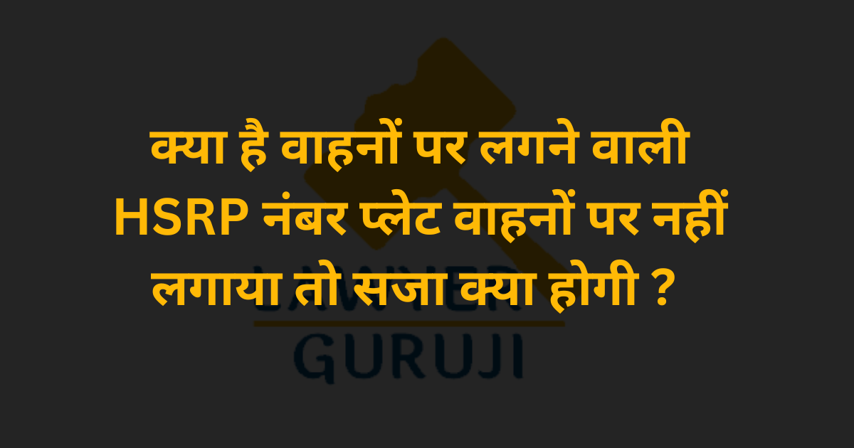 आज के इस लेख में हम जानेंगे की क्या है वाहनों पर लगने वाली HSRP नंबर प्लेट यदि इस नंबर प्लेट को वाहनों पर नहीं लगाया तो सजा क्या होगी ?