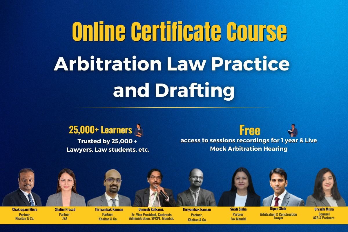 16-Hour Online Certificate Course on Arbitration Law Practice and Drafting by Bettering Results [Rs 3200 off]: Enrol by Aug 29
