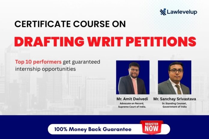 Lawlevelup is organising a 4-week Certificate Course on Drafting Writ Petitions: From Rights to Remedies” (A 4-Day Practical Certificate Course on Constitutional Litigation before the High Courts)