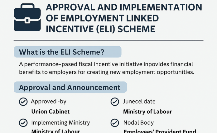 In a significant move to boost formal employment, the Government of India has approved the Employment Linked Incentive (ELI) Scheme — a landmark initiative aimed at encouraging employers to create more jobs and formalize the workforce. This scheme is expected to play a critical role in aligning the growth of industries with employment generation.