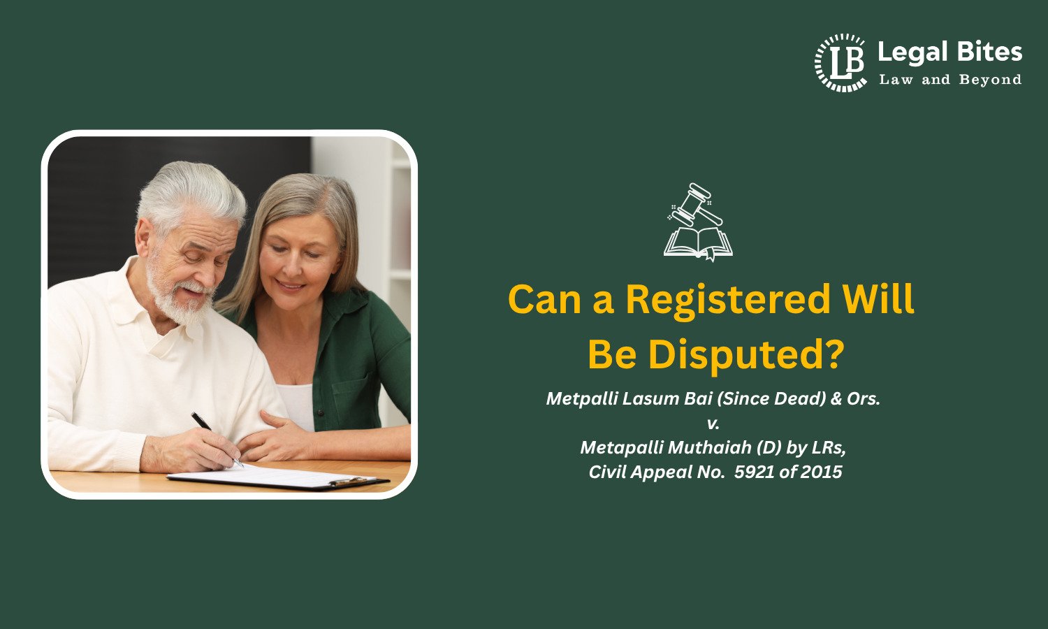 In Indian succession law, a registered Will holds a distinctive evidentiary status. But a pertinent legal question often arises—can a registered Will be presumed to be genuine without requiring additional proof of execution and attestation? The recent Supreme Court judgment in Metpalli Lasum Bai (Since Dead) & Ors. v. Metapalli Muthaiah (D) by LRs, Civil Appeal No. 5921 of 2015, decided on 21 July 2025 (2025 INSC 879), sheds light on this matter and reaffirms several key principles under the Indian Succession Act, 1925 and the Evidence Act, 1872 (Bharatiya Sakshya Adhiniyam, 2023).