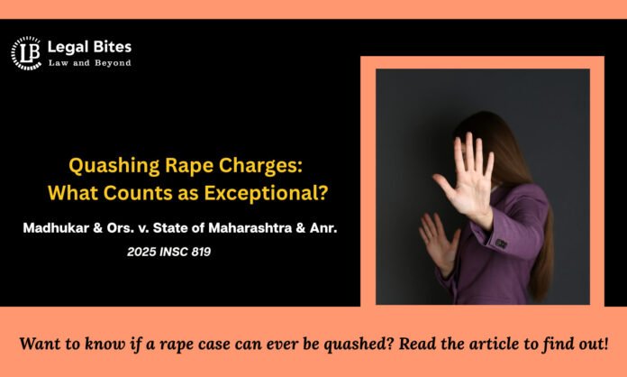 This article explores the jurisprudential basis, legal provisions, and landmark judgments concerning whether exceptional circumstances can justify quashing a rape case, with special focus on the recent Supreme Court judgment in Madhukar & Ors. v. State of Maharashtra & Anr. (2025 INSC 819).