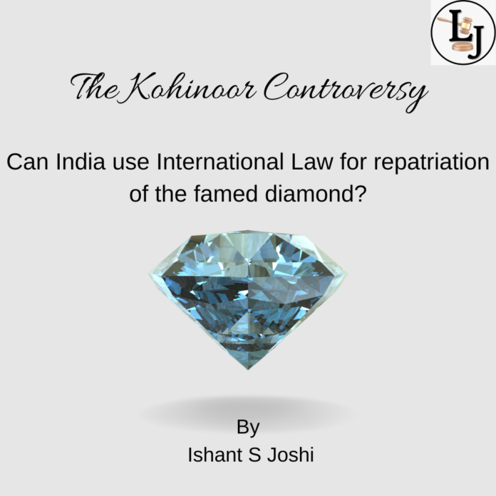 The world has gone through a transformative change since WW II wherein former conquering colonial states such as the UK have sought to save their international goodwill in the changing international landscape. They have tried to do so by leaving conquered countries or by returning stolen/looted cultural property to their country of origin. Against this backdrop, a question arises as to whether India can use the international law framework to acquire the Kohinoor diamond. There are several factors to consider here, and the answer is dilemmatic.
