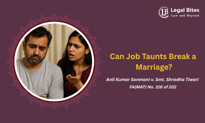 The Chhattisgarh High Court’s ruling in Anil Kumar Sonmani v. Smt. Shradha Tiwari reinforces that words can wound as deeply as physical acts. A wife’s repeated taunts about her husband’s unemployment, particularly when made during a crisis, amount to mental cruelty. Combined with desertion, they justified the dissolution of marriage under Section 13 of the Hindu Marriage Act.