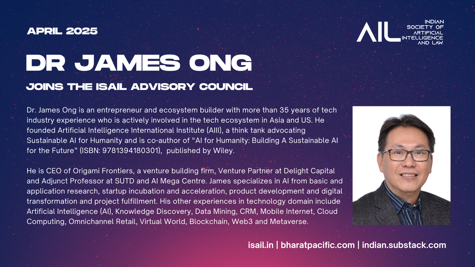 Dr James Ong joins the ISAIL Advisory Council
