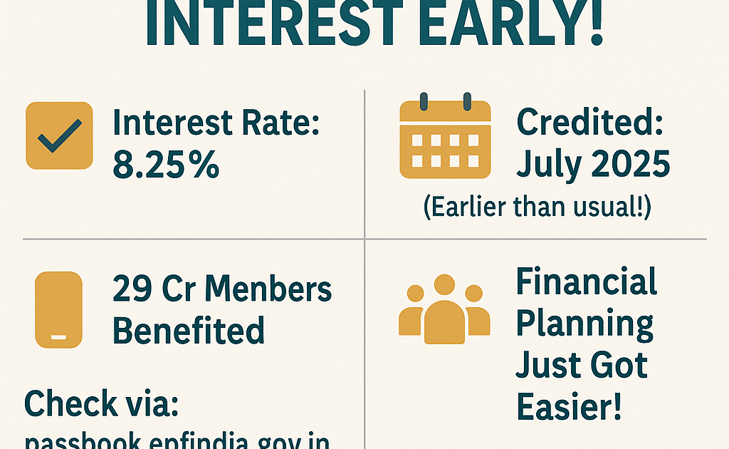 EPFO credits 8.25% interest for FY 2023-24 in July 2025, earlier than usual. Check how to view interest in PF passbook and learn why this matters for 29 crore employees.