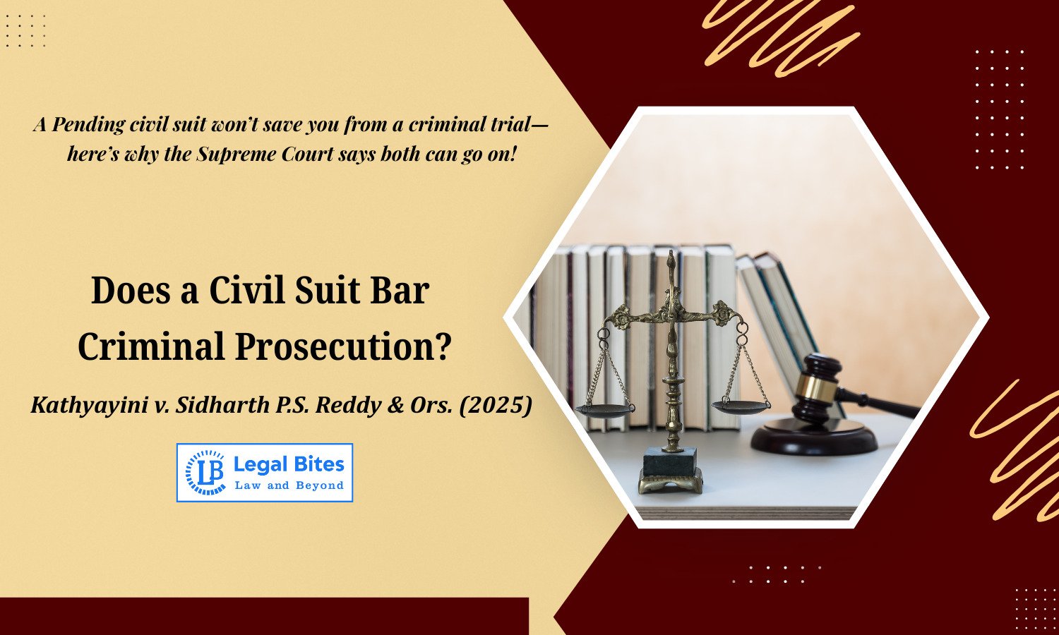 - Pratibha Rani v. Suraj Kumar (1985) 2 SCC 370: Civil law and criminal law can run side by side; they are not mutually exclusive but coextensive.