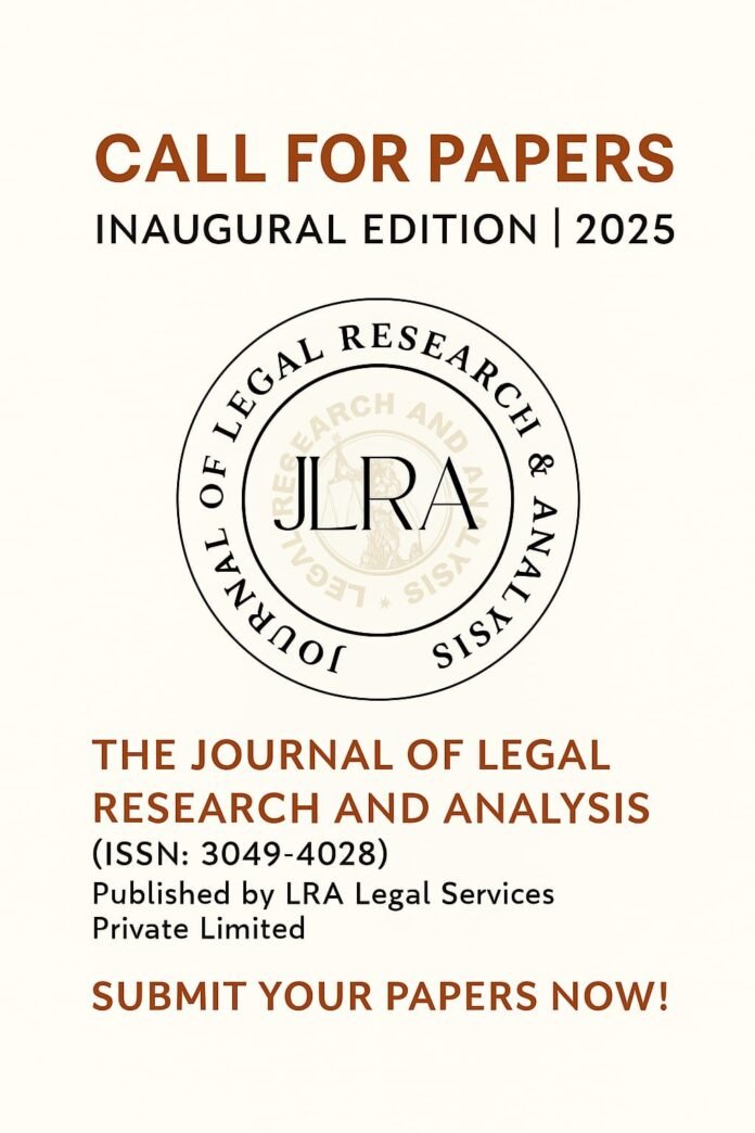 The Journal of Legal Research and Analysis (ISSN: 3049-4028) is an open-access, annual, peer-reviewed academic journal committed to advancing scholarly dialogue across the disciplines of law, social sciences, and related fields.