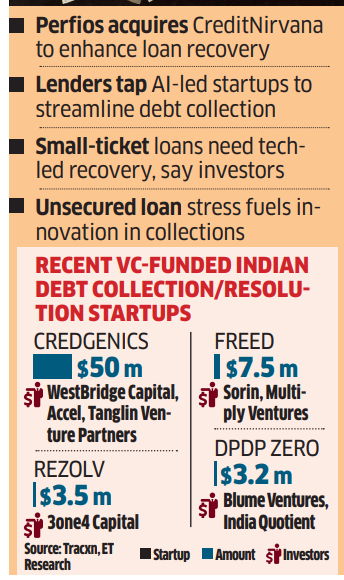 Venture investors believe small ticket size loans, which have grown significantly over the last few years, cannot be collected via traditional routes that involve manual follow-ups, call centres, field agents, and legal notices.