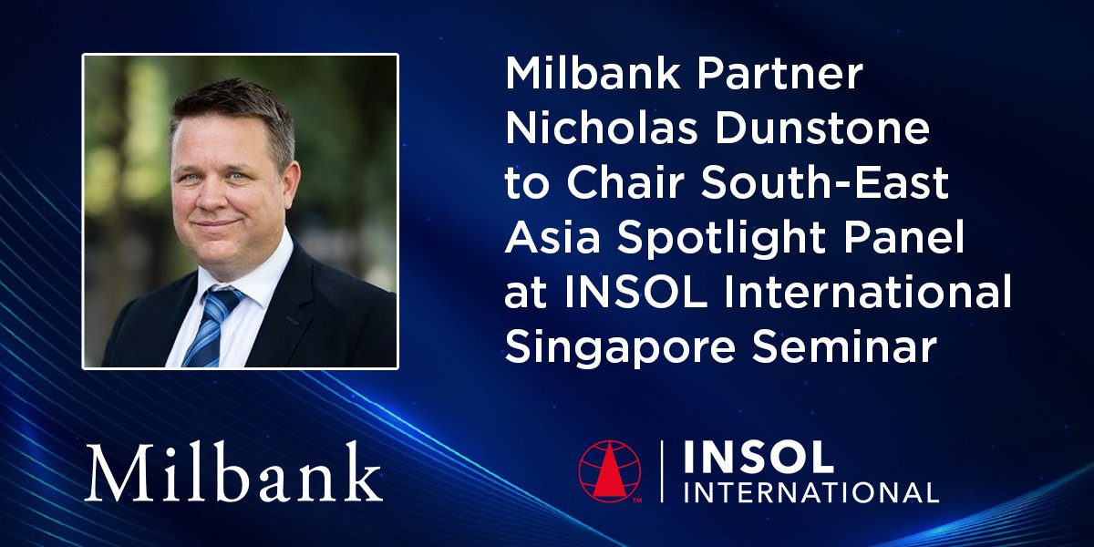 Milbank LLP Financial Restructuring partner Nicholas Dunstone will chair the South-East Asia Spotlight panel at the INSOL International Singapore Seminar on August 27, 2024.