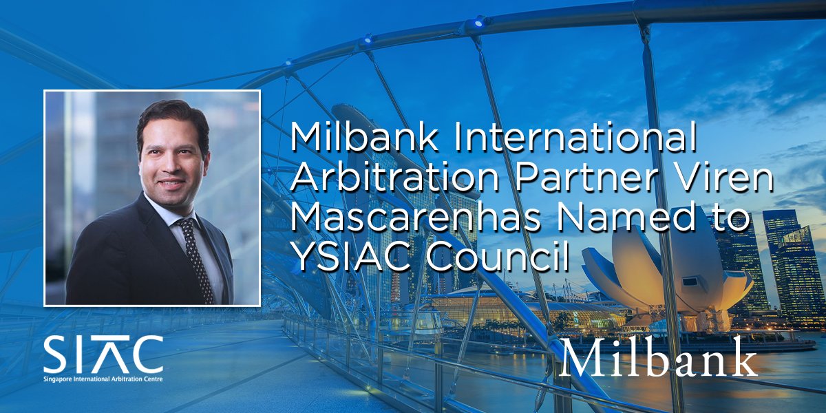 Milbank LLP International Arbitration partner Viren Mascarenhas has been named a member of the Young Singapore International Arbitration Centre (YSIAC) Council. Mr. Mascarenhas will serve on the Americas regional committee.