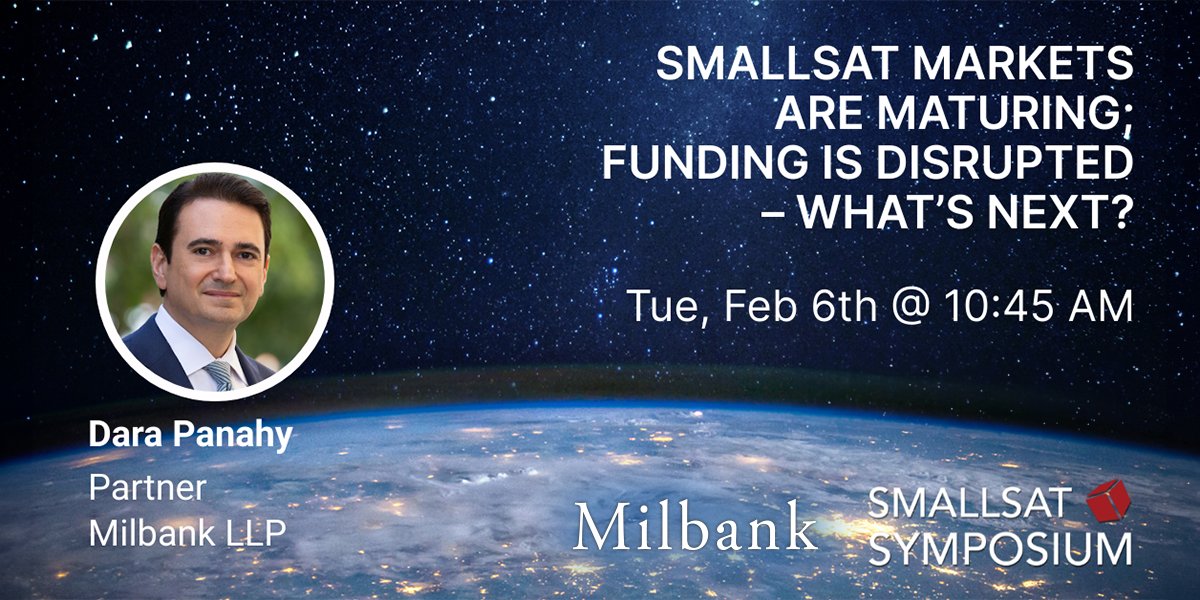 Milbank LLP partner Dara Panahy will moderate a panel titled “Smallsat Markets Are Maturing; Funding is Disrupted – What’s Next?” at the SmallSat Symposium, on February 6, 2024 in Silicon Valley. Mr. Panahy will be joined by speakers from Promus Ventures, Munich Re Ventures, Generation Space, Summit Ridge Group and Lockheed Martin Ventures.