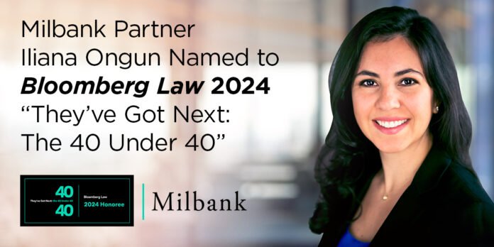 Iliana Ongun, a partner in Milbank’s Global Corporate/M&A Group in New York, was named to Bloomberg Law’s 2024 “They’ve Got Next: The 40 Under 40.” The list recognizes the accomplishments of excellent young lawyers nationwide and their place in the next generation of legal leaders.