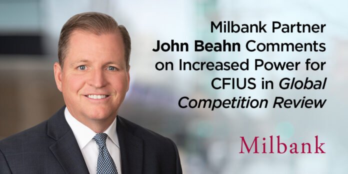 Milbank Partner John Beahn Comments on Increased Power for CFIUS in Global Competition Review