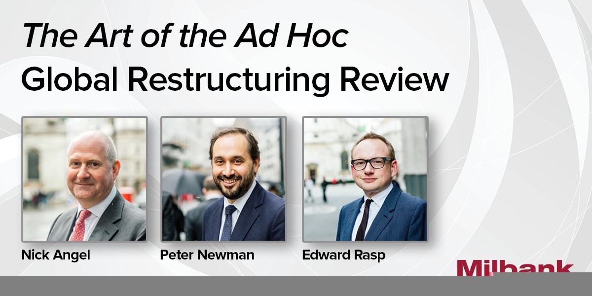 Milbank Financial Restructuring partners Nick Angel and Peter Newman and associate Edward Rasp co-authored the chapter “A Comparison of an Ad Hoc Committee and Official Committee Under Insolvency and Other Laws in England and the United States” in The Art of the Ad Hoc, published by Global Restructuring Review. The publication combines input and collective wisdom from today’s leading restructuring experts, providing insight on how to work successfully with ad hoc committees.
