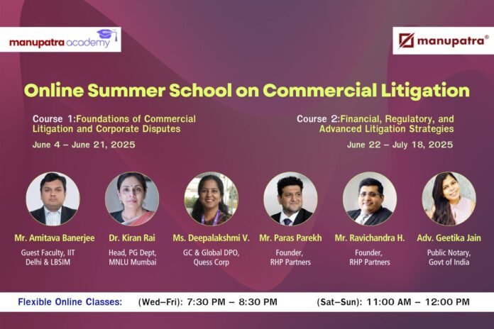Online Summer School on Commercial Litigation by Manupatra: Apply Now!