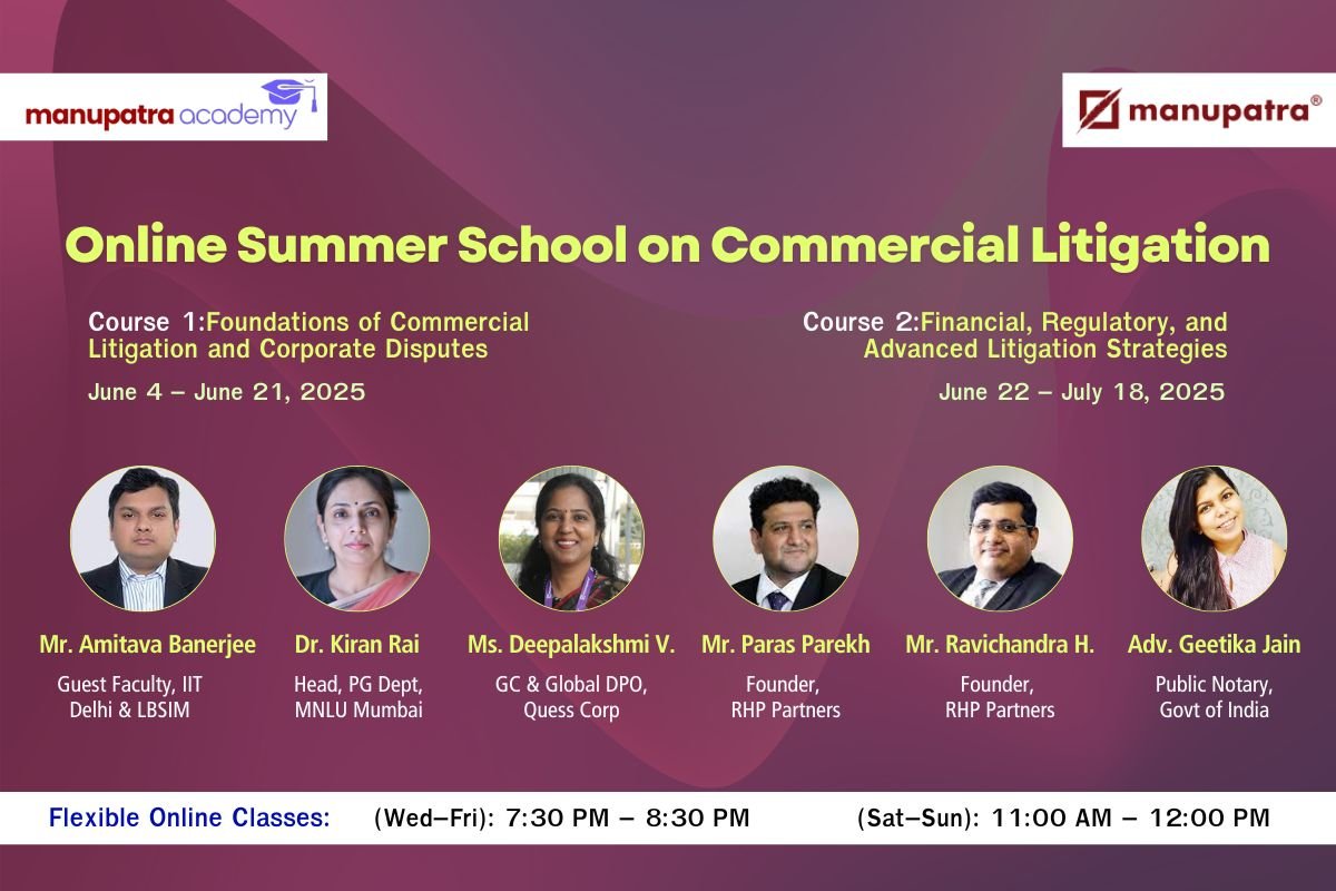 Manupatra Academy invites law students and young professionals to a one-of-a-kind Online Summer School focused on mastering Commercial Litigation and Corporate Law through practical frameworks, real case studies, and expert mentorship.
