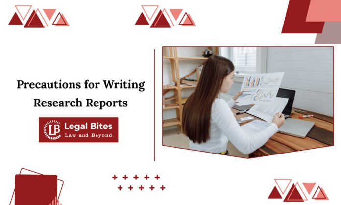 A research report is a structured presentation of the findings of a research study. It serves as a vital communication tool that documents the objectives, methodology, observations, analysis, and conclusions of a research project. However, the credibility and utility of a research report depend largely on the accuracy, objectivity, and clarity with which it is written. Thus, observing essential precautions during the drafting of a research report is not only good academic practice but a prerequisite for scholarly excellence.