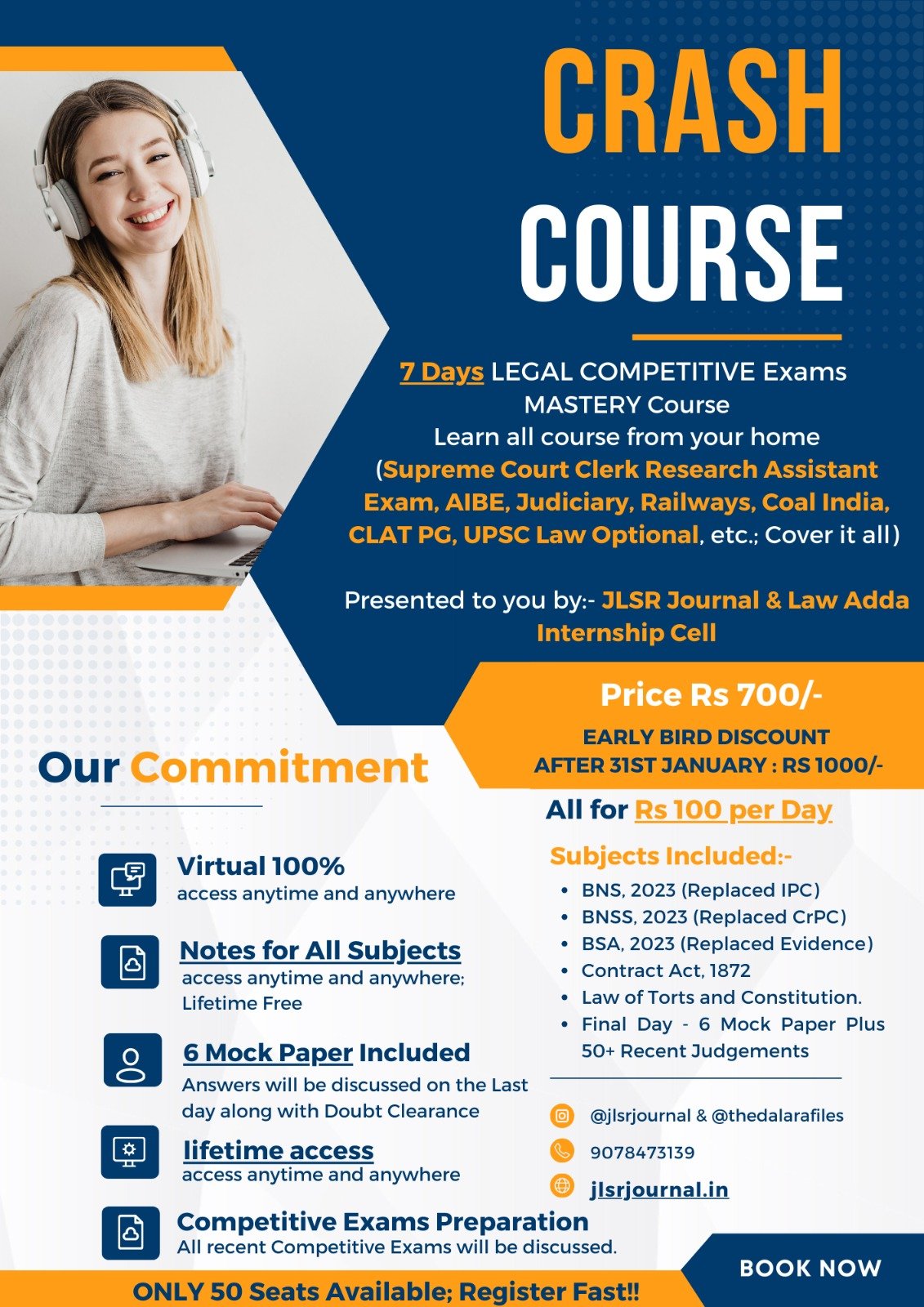 Welcome to the 7-Day Legal Competitive Exams Mastery Course , presented by JLSR Journal & Law Adda Internship Cell. Are you ready to supercharge your preparation and achieve your dreams of clearing top-tier legal competitive exams? This is your golden opportunity to transform your career prospects in just one week.